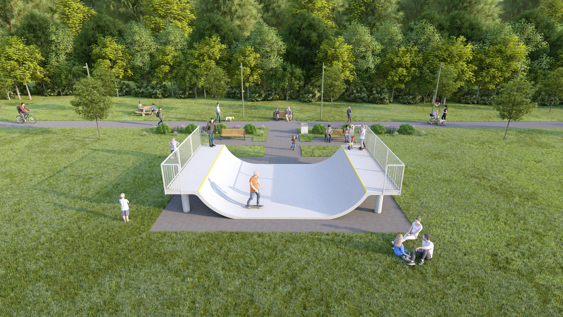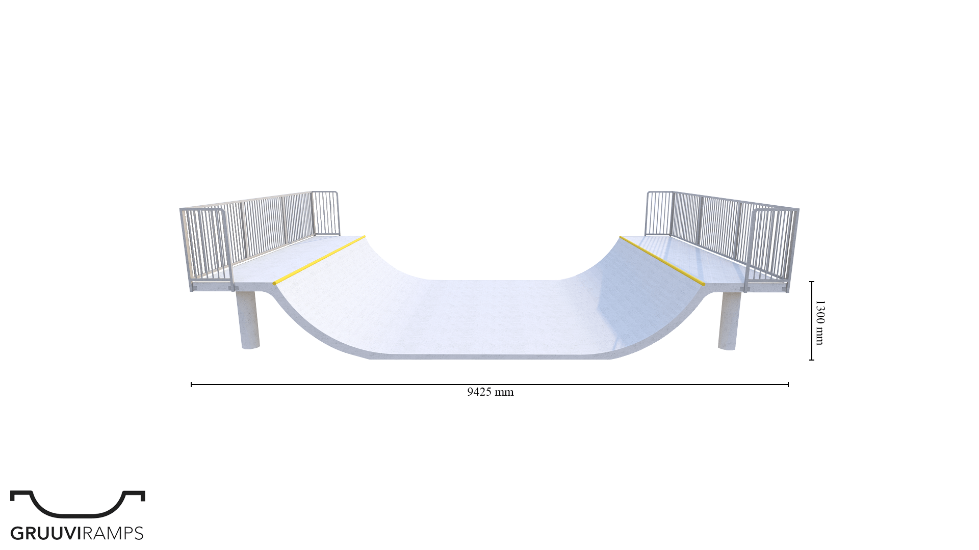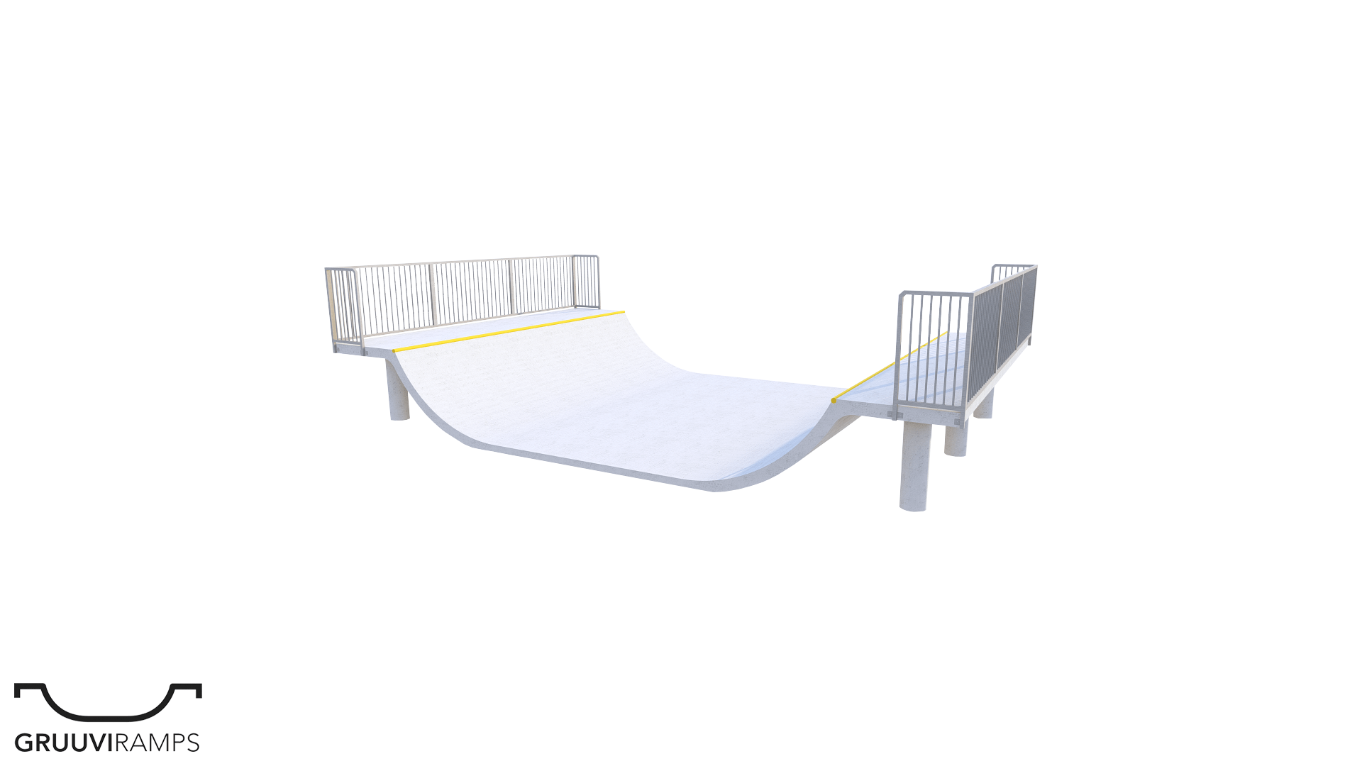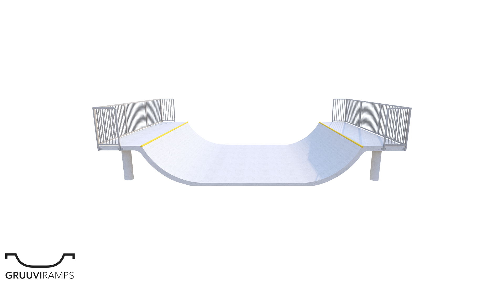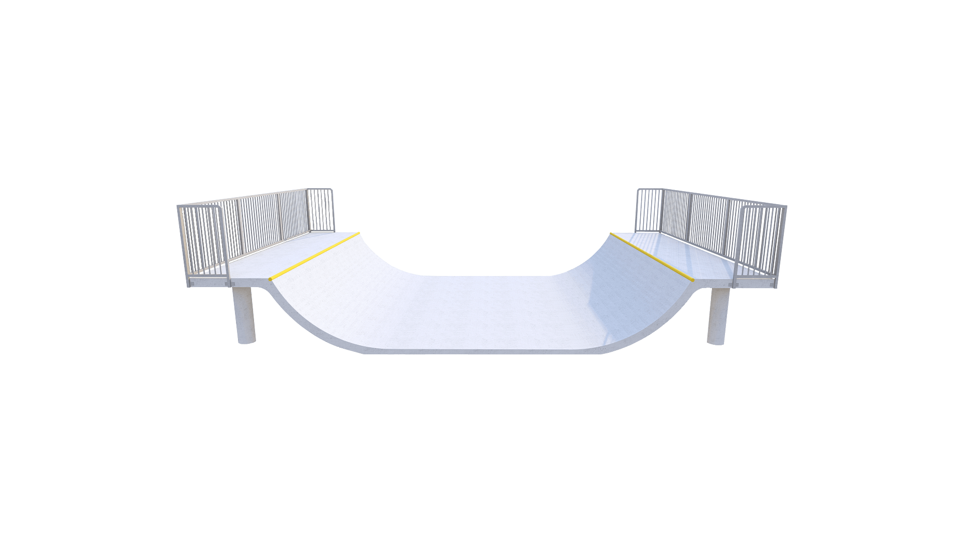 • Rakenteen tukena on vahva betonipilareihin perustuva rakenne, ja turvallisuuden varmistamiseksi on asennettu kaiteet. Tämä tekee minirampista sopivan julkisiin puistoihin, koulujen pihoille ja urheilukeskuksiin, tarjoten turvallisen ja kestävän ratkaisun.