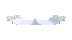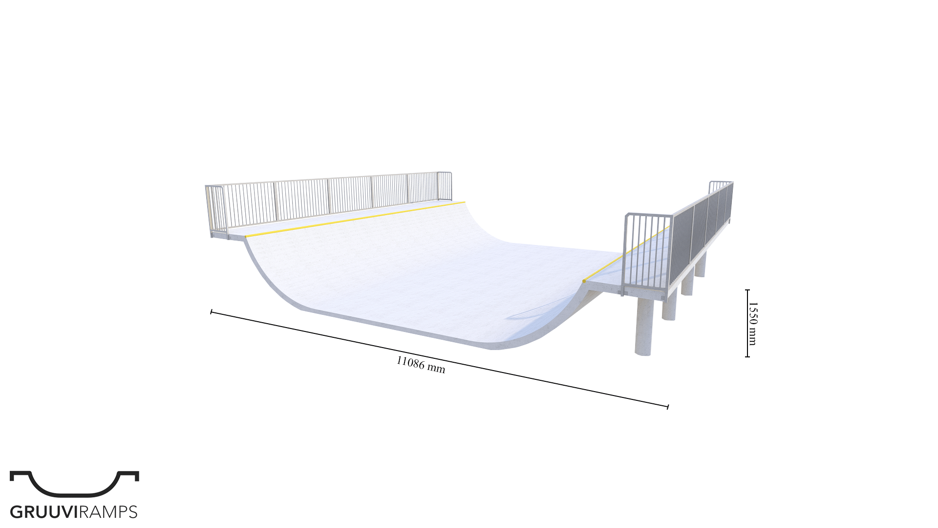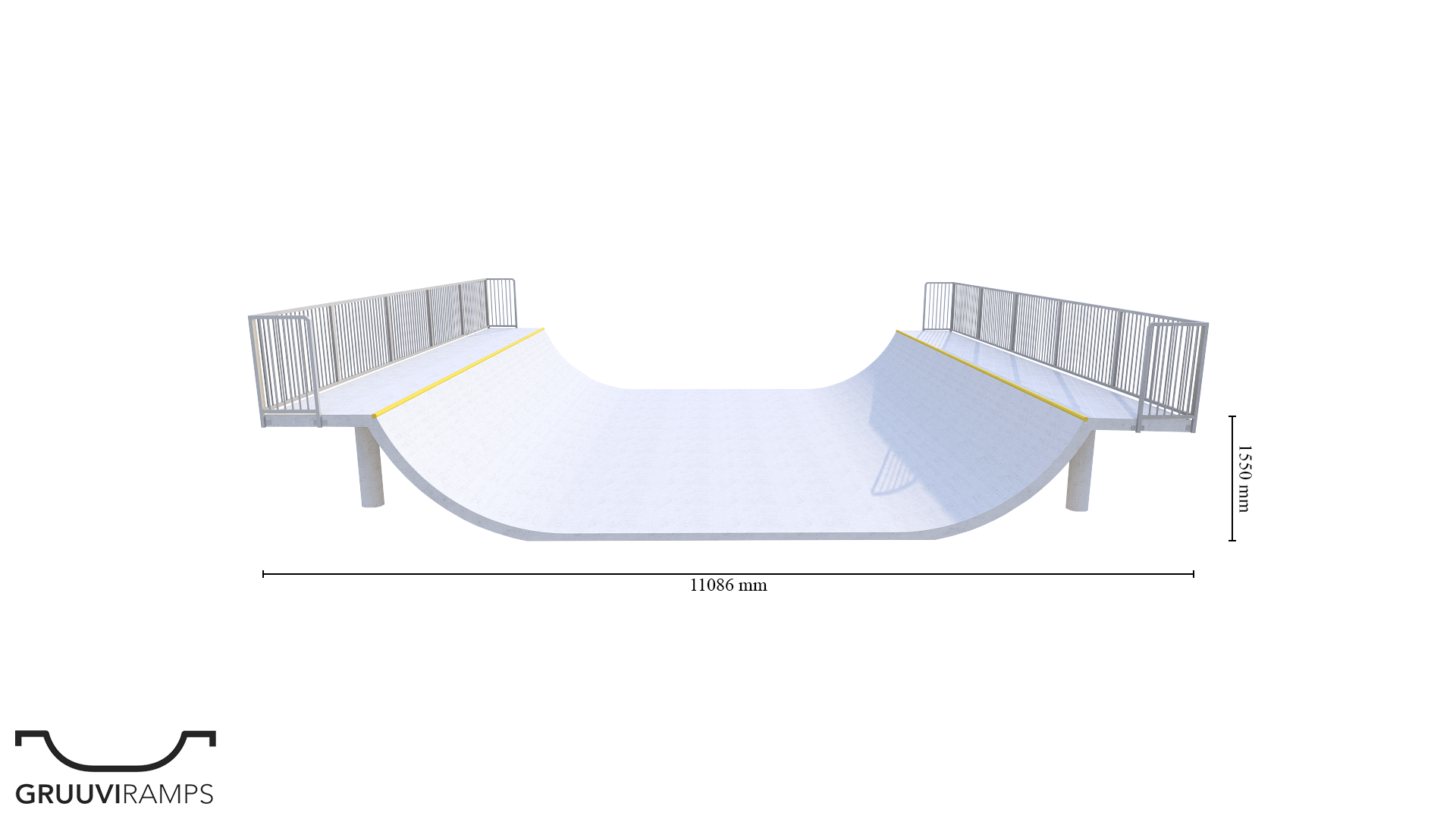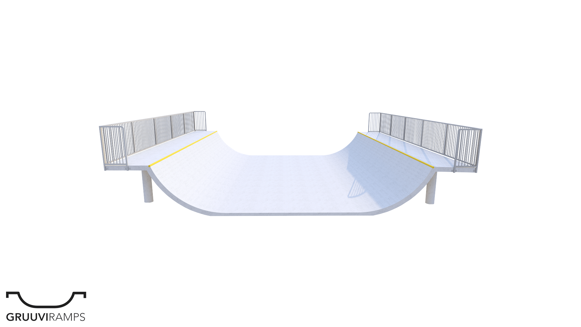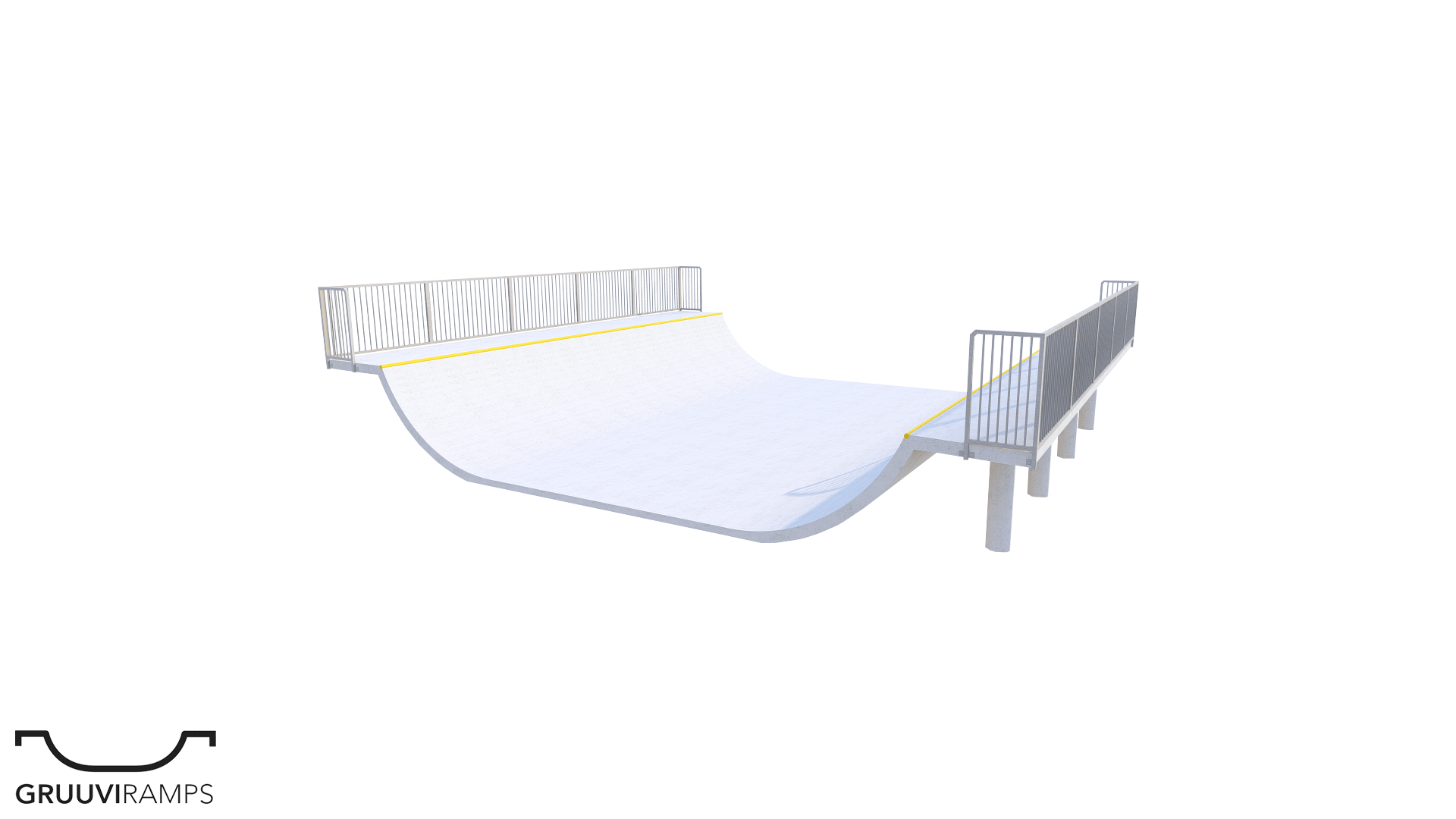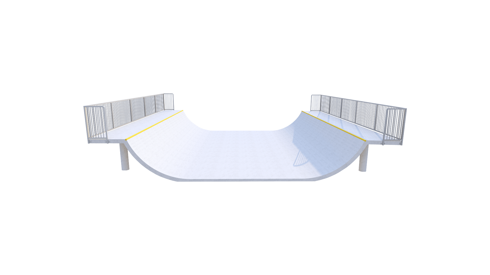 Rakenteen tukena on vahva betonipilareihin perustuva rakenne, ja turvallisuuden varmistamiseksi on asennettu kaiteet. Tämä tekee minirampista sopivan julkisiin puistoihin, koulujen pihoille ja urheilukeskuksiin, tarjoten turvallisen ja kestävän ratkaisun.