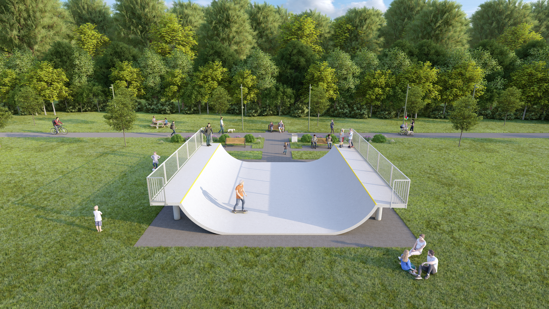 Teräsbetoninen miniramppi ei vaadi erillistä salaojitusta, sillä sen rakenne mahdollistaa veden luonnollisen valumisen maahan.